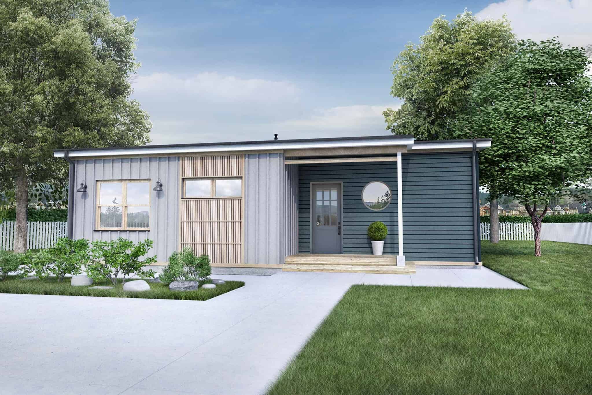 With its charming curb appeal and practical layout, the Truoba Mini 118 is a standout in the world of compact living. Spanning 1000 square feet, this thoughtfully designed 2-bedroom, 1-bathroom house plan offers an efficient lifestyle without sacrificing comfort or style.