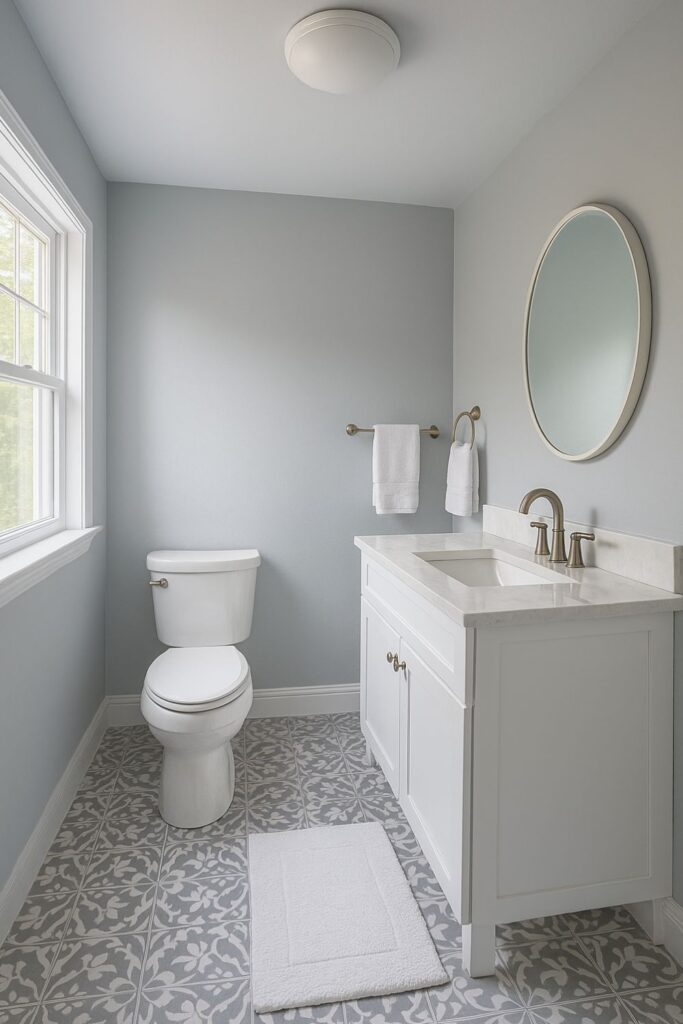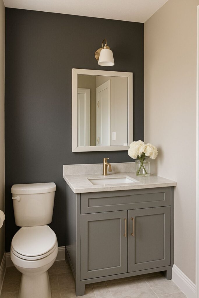 Not ready to go all-in? Try a single accent wall in slate or storm gray behind the vanity or tub. It anchors the room and adds a touch of drama without overpowering.