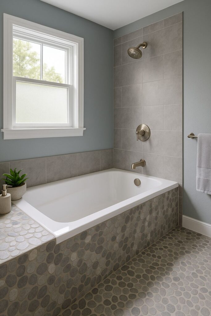 Incorporate river rocks or pebble tiles in gray for spa-like serenity. They feel amazing underfoot and bring a calming, earthy texture to showers or bath areas.