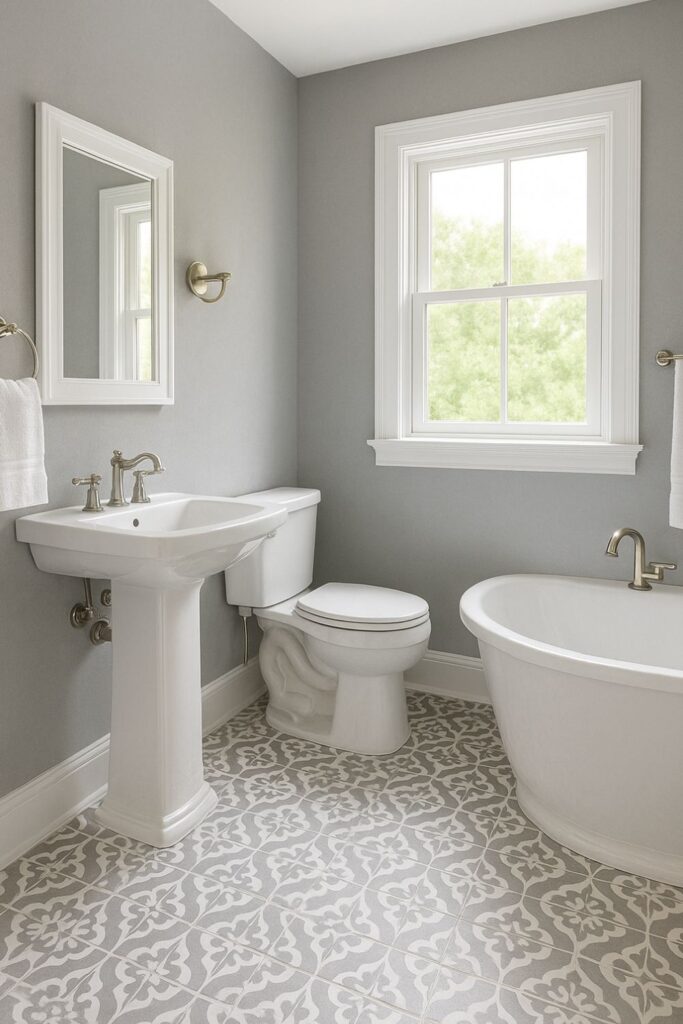 Add personality with patterned floor tiles in shades of gray. From Moroccan motifs to geometric shapes, they bring energy and charm without straying from the neutral palette.