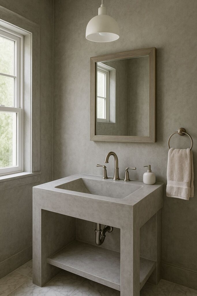 Concrete walls, sinks, or countertops in gray offer a raw, industrial feel. Pair them with soft textiles and warm lighting for a cozy-meets-contemporary look.