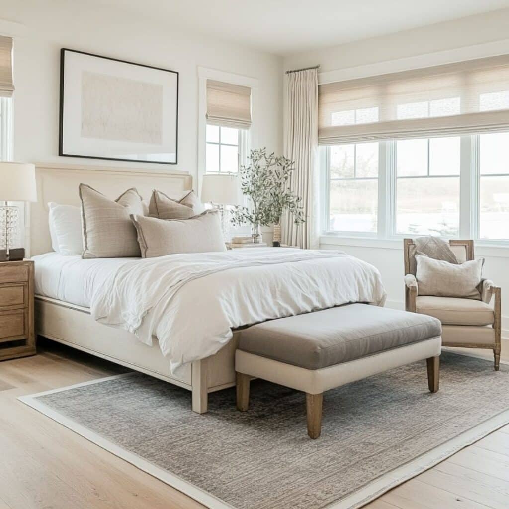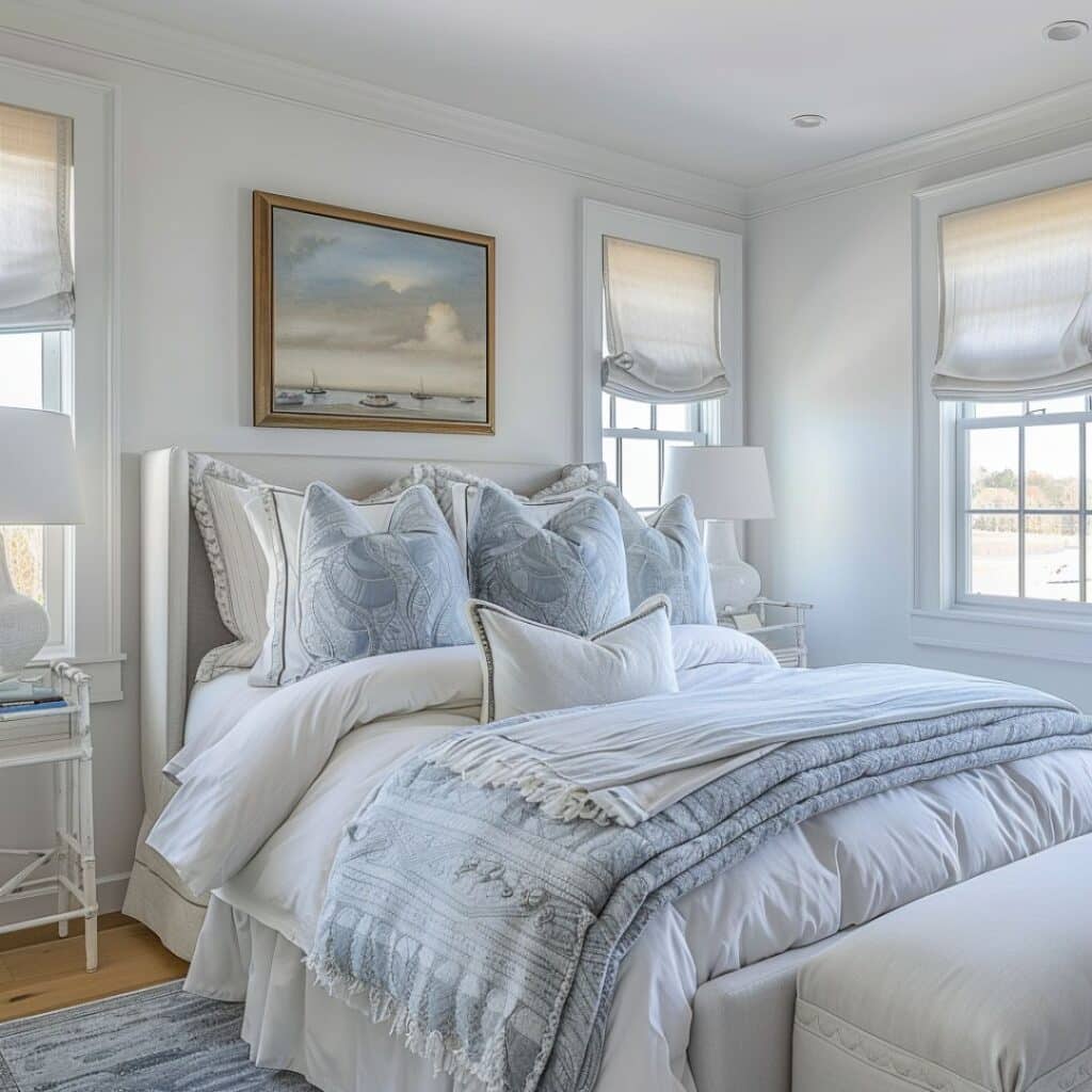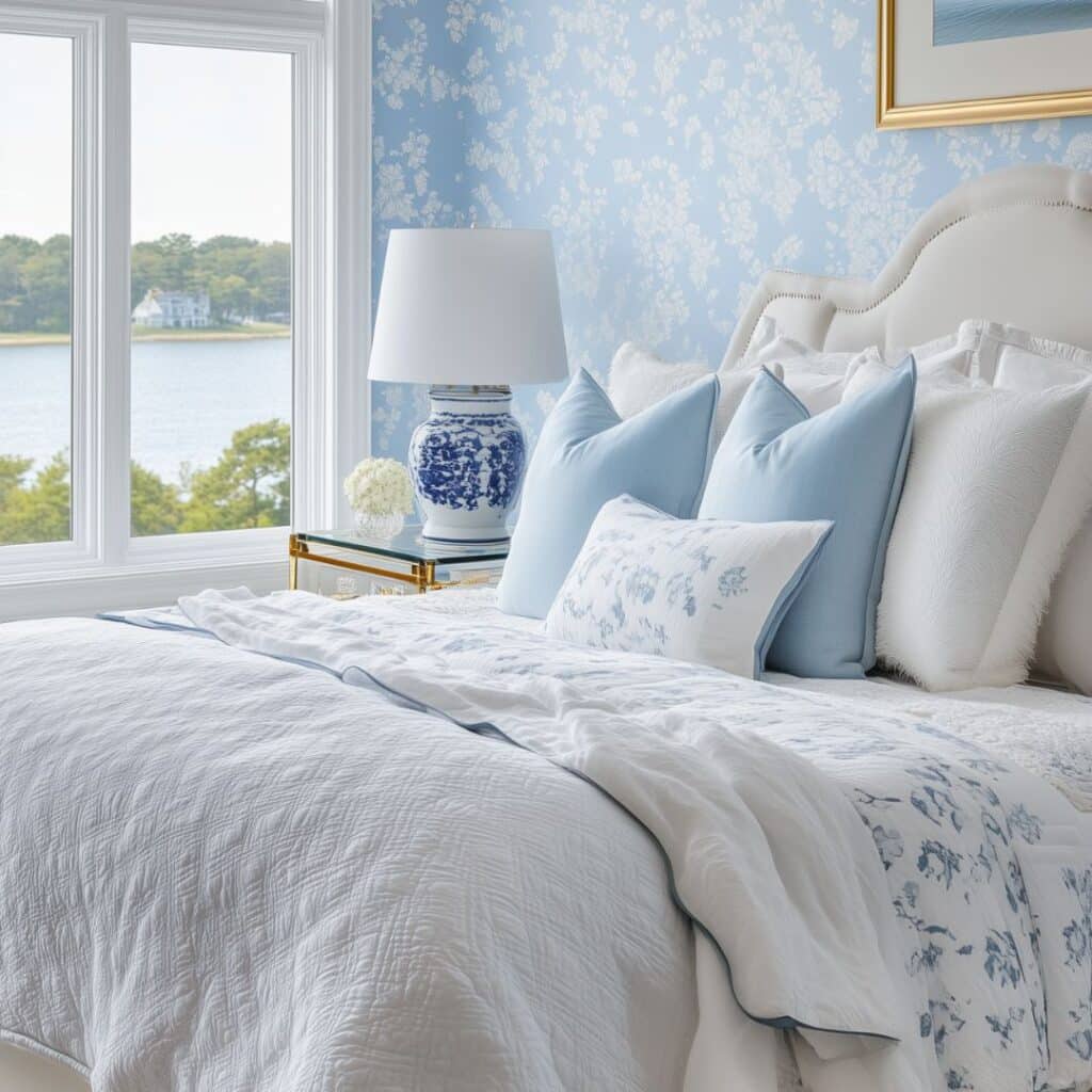 From crisp white linens and natural textures to sophisticated blue accents and classic furniture pieces you’ll learn how to achieve that coveted beachside sophistication right in your own home. Let’s explore how you can bring this sought-after look into your bedroom while maintaining the authenticity and refinement that defines true Hamptons style.