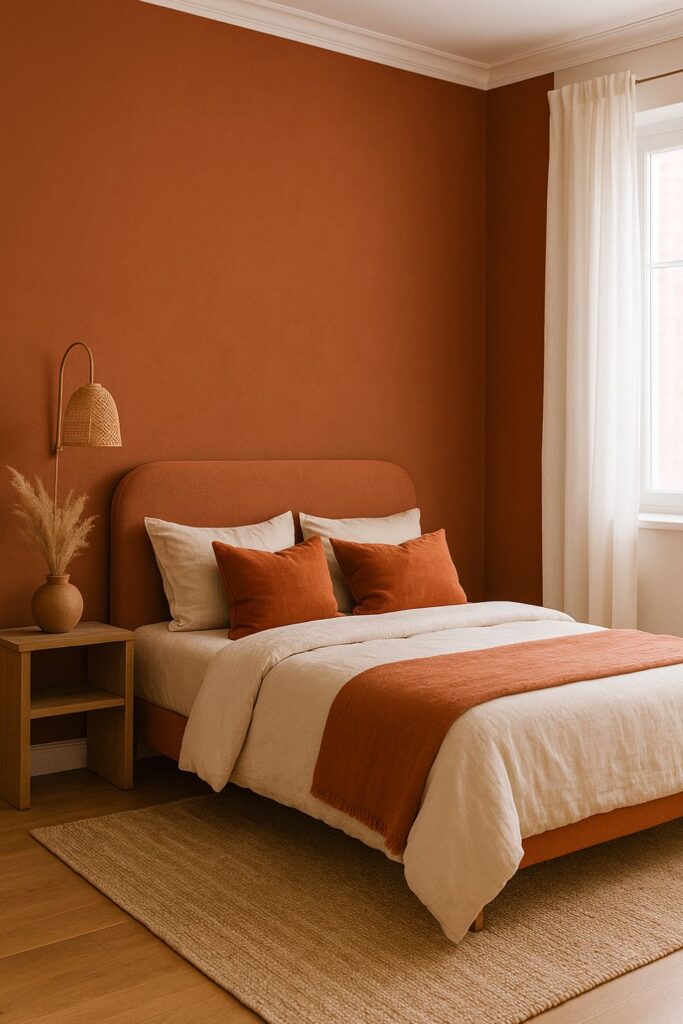 Terracotta offers a muted, earthy alternative to classic red. It works beautifully on walls, headboards, or rugs and pairs naturally with clay pots, wood finishes, and woven textures.